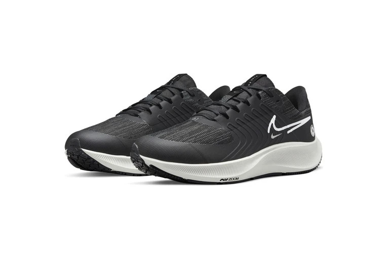 Maak hardlopen bij nat weer een dagelijkse gewoonte met de Nike Air Zoom Pegasus 38 Shield. Jouw werkpaard met vleugels komt met een warm bovenwerk en een waterafstotende coating. We staan klaar om jouw voeten warm en droog te houden bij natte omstandigheden, en dat doen we met een gevoerde tong met inzetstukken. Stevige grip is op banden geïnspireerd zodat je kunt blijven bewegen op gladde straten.