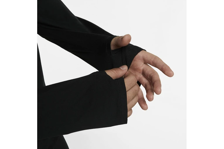 Je favoriete hardloopessential keert terug met een zachte feel en technologie voor vochtbeheer. Dit kledingstuk is ideaal om zo te dragen of met een ander laagje. De Nike Dri-FIT top bevat een comfortabele bedekking met een halflange rits en duimgaten voor extra warmte. Dit product is gemaakt van materiaal met meer dan 75% vezels van gerecyclede polyester.