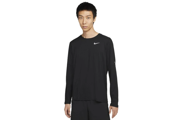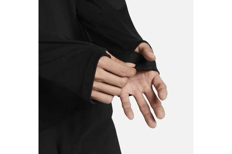 De zachte, soepele Nike Dri-FIT top met ronde hals kan op zichzelf of als extra laagje worden gedragen. De duimgaten houden je handen bedekt in koud weer. En nog beter, hij is gemaakt met minstens 75% gerecyclede polyestervezels.