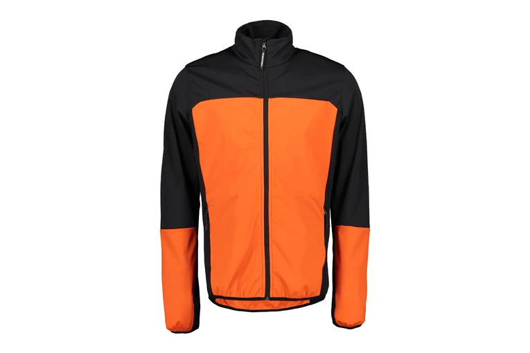 Men’s running jacket with softshell front and sleeves. This hybrid running jacket uses a combination of materials for optimal performance during high-output activities in inclement weather. The front and sleeves are made of wind and waterproof softshell to block out wind and rain hitting you from the front, while the sides, underarms and back consist of moisture-wicking and breathable technical jersey to ease movement, vent excess heat and improve comfort during sports.