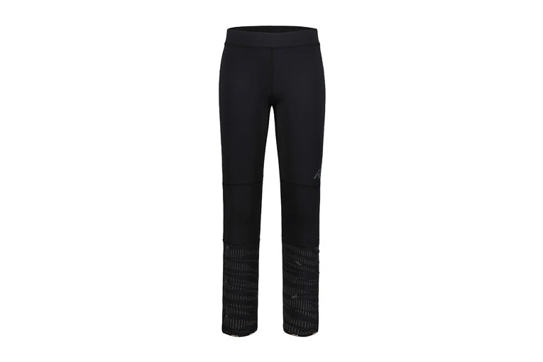 Hardlooplegging voor heren met reflecterende decoratieve print. Deze sneldrogende, nauwsluitende sportbroek van rekbaar gebreid materiaal is niet alleen geschikt voor hardlopen, maar ook voor de sportschool en andere sporten. De panty heeft een elastische tailleband en ritsen aan de pijpen. De taille heeft een zak met ritssluiting aan de achterkant die vanaf de zijkant opent en kan worden gebruikt voor bijvoorbeeld een telefoon. Onder de knie op de benen zit een reflecterend printpatroon. Dit product is echter geen reflector en beschermt de gebruiker niet – draag altijd een geschikte reflector als het donker is.